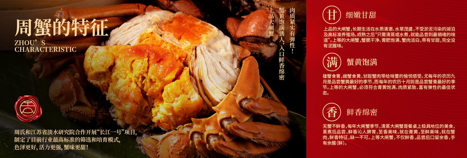 周氏水產(chǎn)精品大閘蟹,14年匠心沉淀,全國(guó)87家直營(yíng)門店,100只大閘蟹只精選最優(yōu)50只。不虛標(biāo)規(guī)格,不玩???
